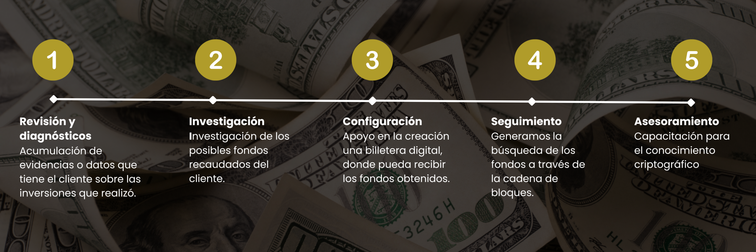 Somos especialistas en la recuperación de fondos perdidos por fraudes. Analizamos cada caso con investigación, respaldo legal y enfoque estratégico. Actuamos con procesos reales.